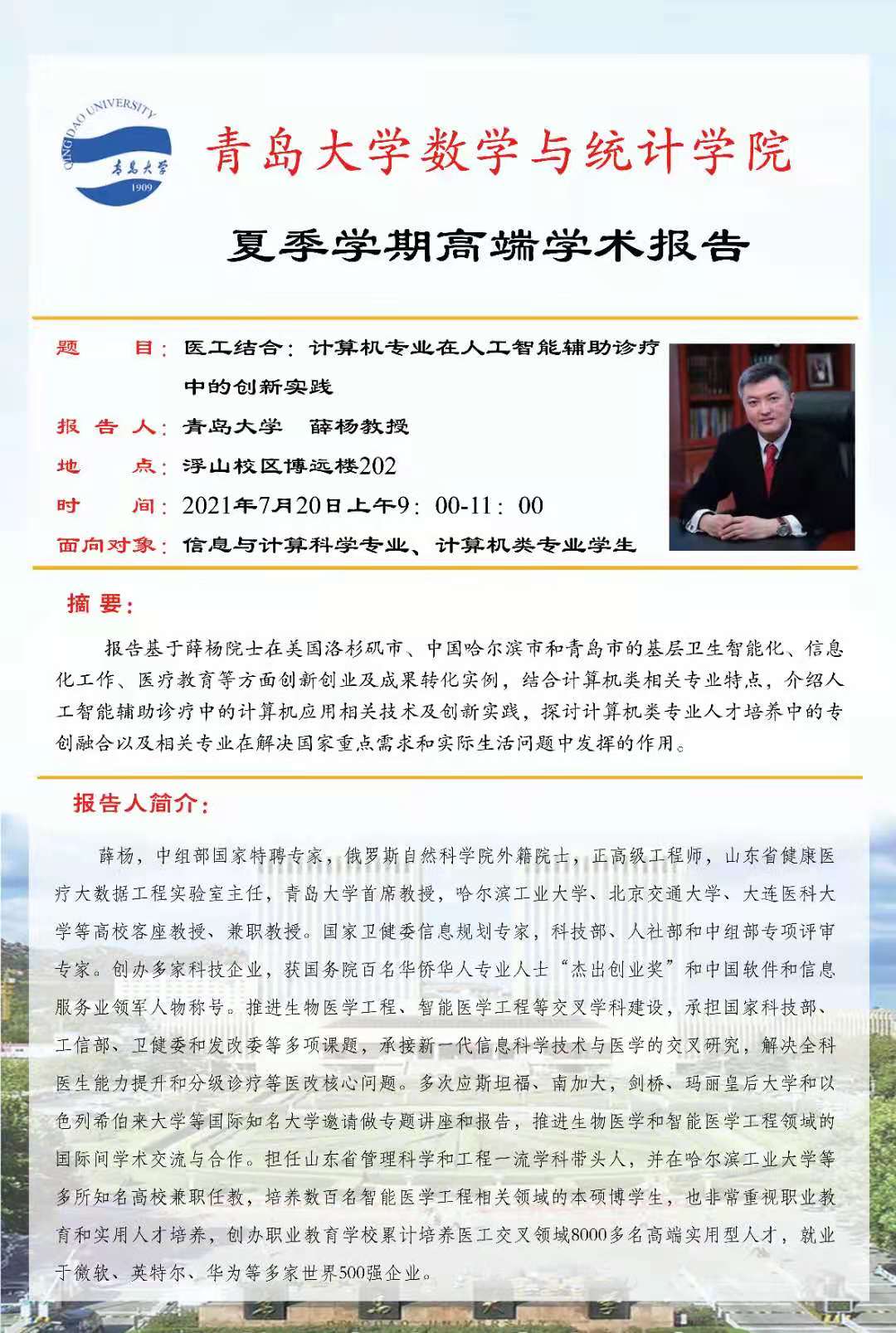 2021夏季学期高端学术报告(八):医工结合:计算机专业在人工智能辅助诊疗中的创新实践