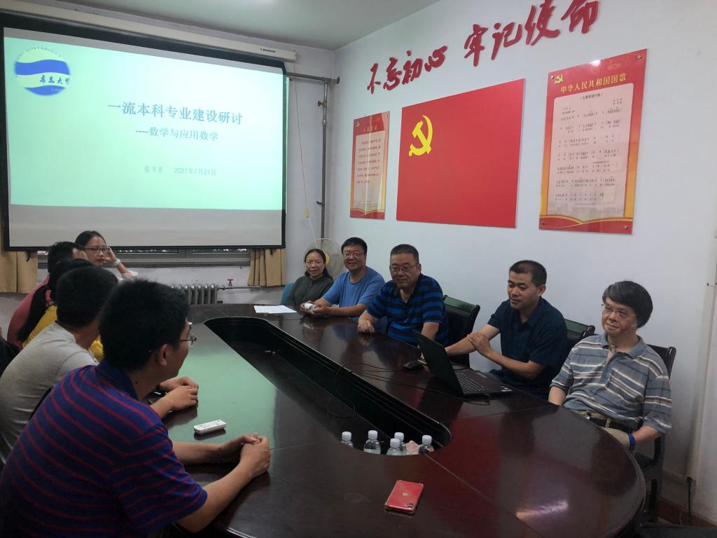 2021年7月21日9:00-11:00,Beat365中文官方网站夏季学期第八场教师发展活动在励行楼218举行,数学系教师针对如何开展数学与应用数学一流本科专业建设进行了研讨,系主任刘开恩主持本次研讨。