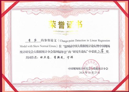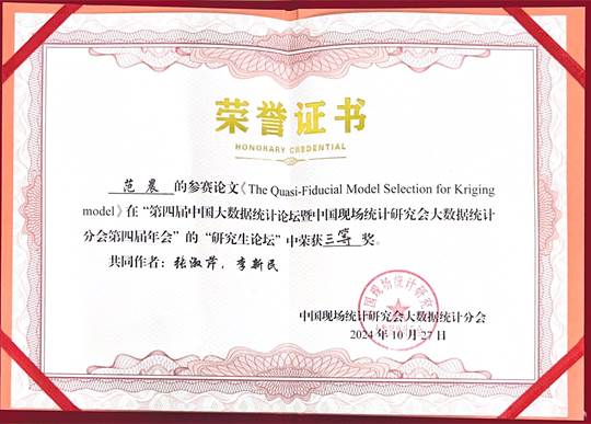 Beat365官网师生参加第四届中国大数据统计论坛暨中国现场统计研究会大数据统计分会第四届年会并获优秀论文奖