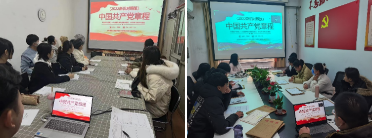 随后,支部宣传委员房旗睿领学了中国共产党第二十次全国代表大会上通过的《中国共产党章程(修正案)》,重点讲解了党章修改部分。