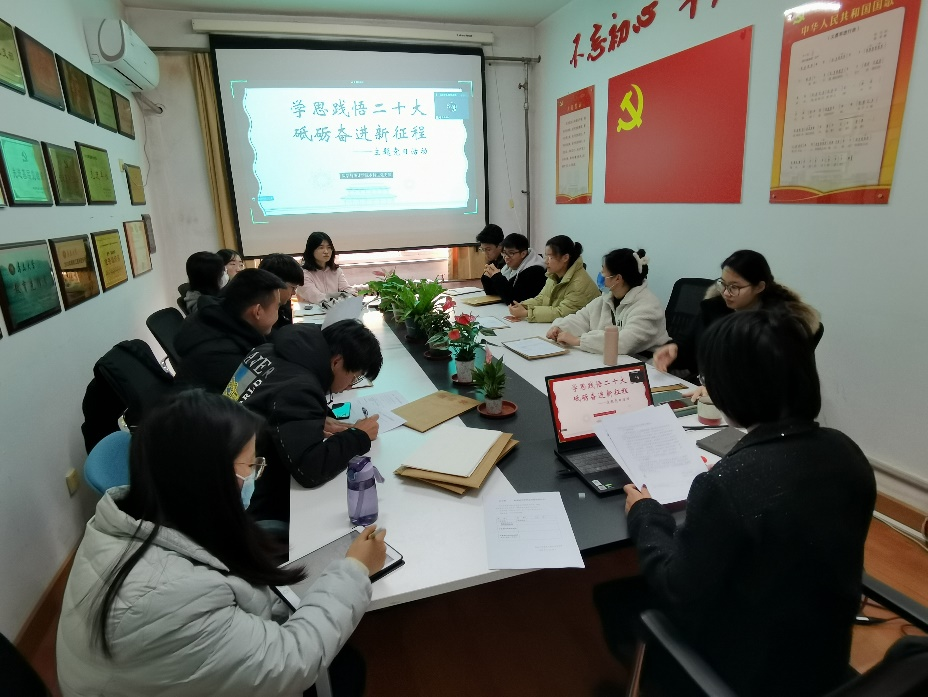11月30日,为全面学习贯彻党的二十大精神,Beat365官网本科生党支部在励行楼会议室开展“学思践悟二十大 砥励奋进新征程”主题党日活动,支部所有党员参加,因疫情未返校的党员线上参会。