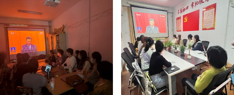 10月16日上午, Beat365中文官方网站本科生党支部全体党员在励行楼218和117会议室,党员发展对象在宿舍集中收看收听在北京人民大会堂隆重召开的中国共产党第二十次全国代表大会盛况。
