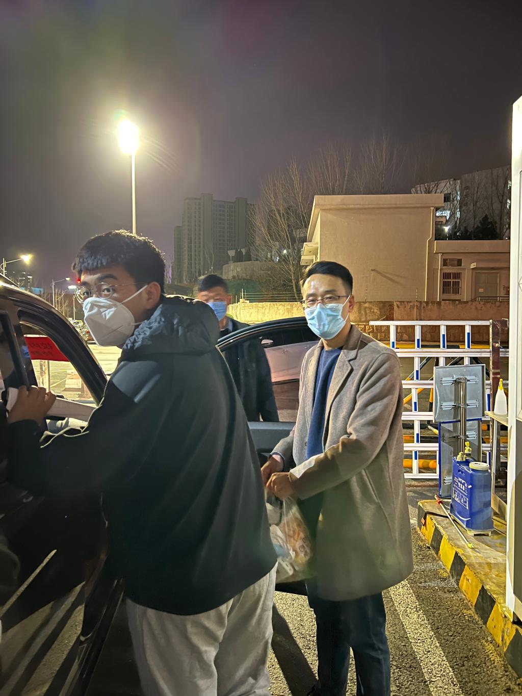 3月19日,一名浮山校区的学生胸口疼痛两天,经校医院诊断后需外出就诊。信息发出后不久,就有多名党员老师主动联系,愿意承担接送学生的任务。党政办邢欣老师第一时间与学院相关负责人取得联系,等待辅导员老师为学生办理出校就医审批手续过程中,邢欣自费采购一些物资通过消杀缓冲区转送给值班老师,并于晚上七点半多将学生顺利送到市立医院急诊科就医,后学院戴照鹏老师接力将就医学生护送回学校。
