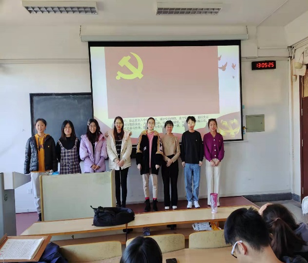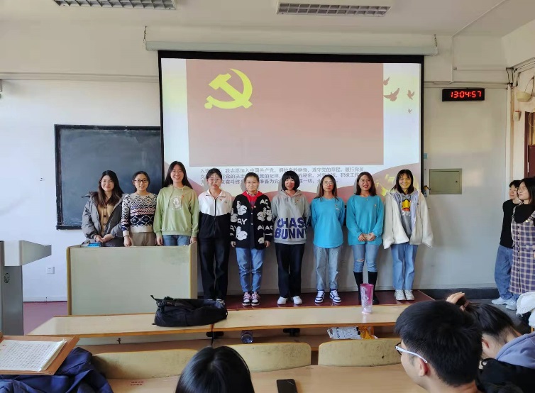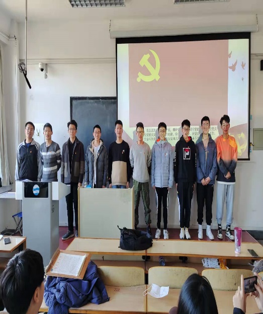 清点到会人数,学生党支部书记朱雨彤同志宣读拟发展为预备党员名单。