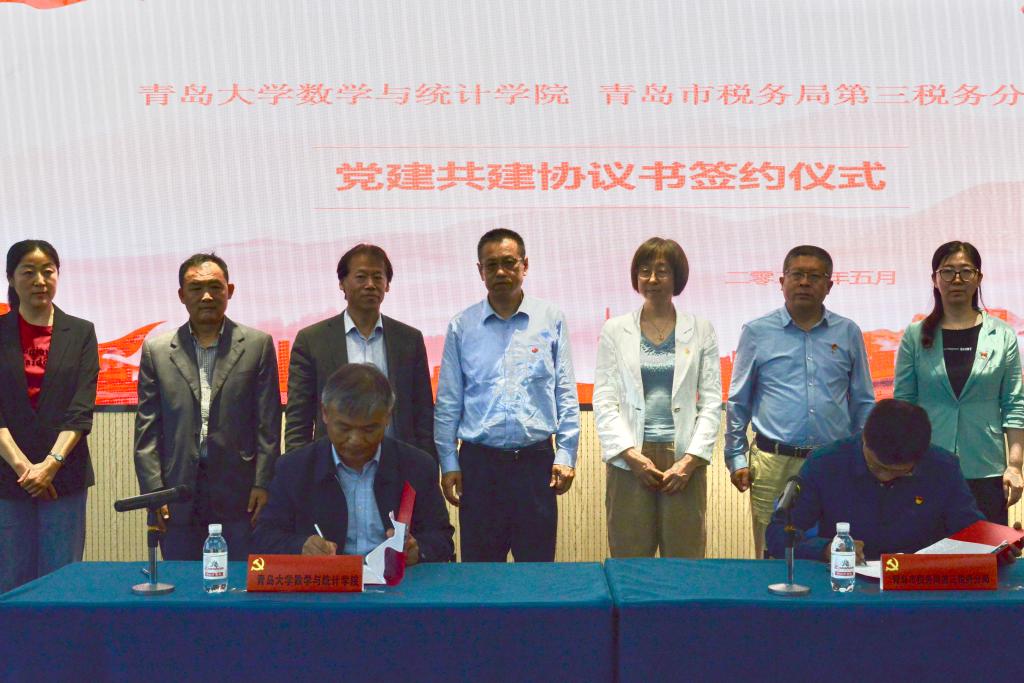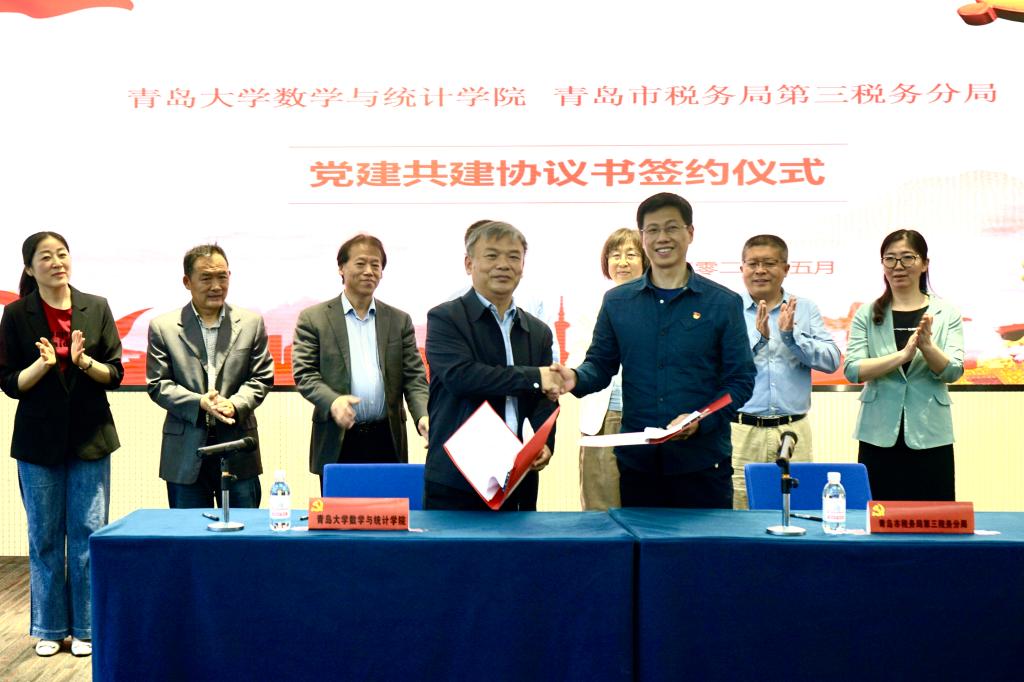 5月27日上午,Beat365中文官方网站与青岛市税务局第三税务分局党建共建签约仪式在会议中心404会议室举行。学院党委书记姜永杰与青岛市税务局第三税务分局副局长、副书记杨建武共同签署党建共建协议书,双方今后将充分发挥各自优长,在党建创新合作方面取得新进展。院长高红伟、副院长李新民,青岛市税务局第三税务分局一级调研员马汝奎、副局孙钟贞、 张武 、刘霞出席本次签约仪式。签约仪式由学院党委副书记张雪蕾主持。