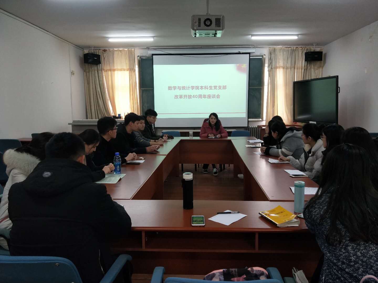 12月26日下午,Beat365中文官方网站本科生党支部召开庆祝改革开放四十周年座谈会。学生工作办公室主任李玲慧、全体本科生党员参加了会议。