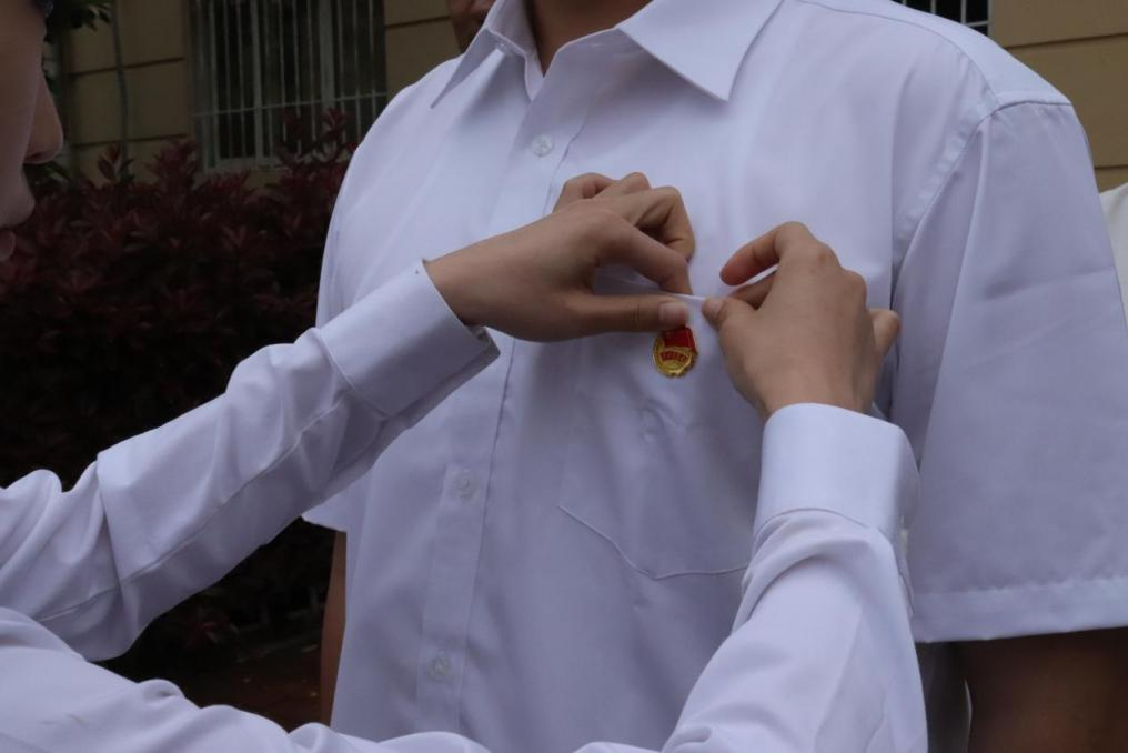 张瀚发展团员宣读《中国共产主义青年团章程》有关团员权利与义务等相关内容,强调各位新团员要树立崇高的理想,明确团的任务,遵守团的章程,履行团员义务,在学习和生活中关心同学、帮助同学,尽心尽力地为班级、为学校、为社会贡献,努力做一名合格的共青团员。