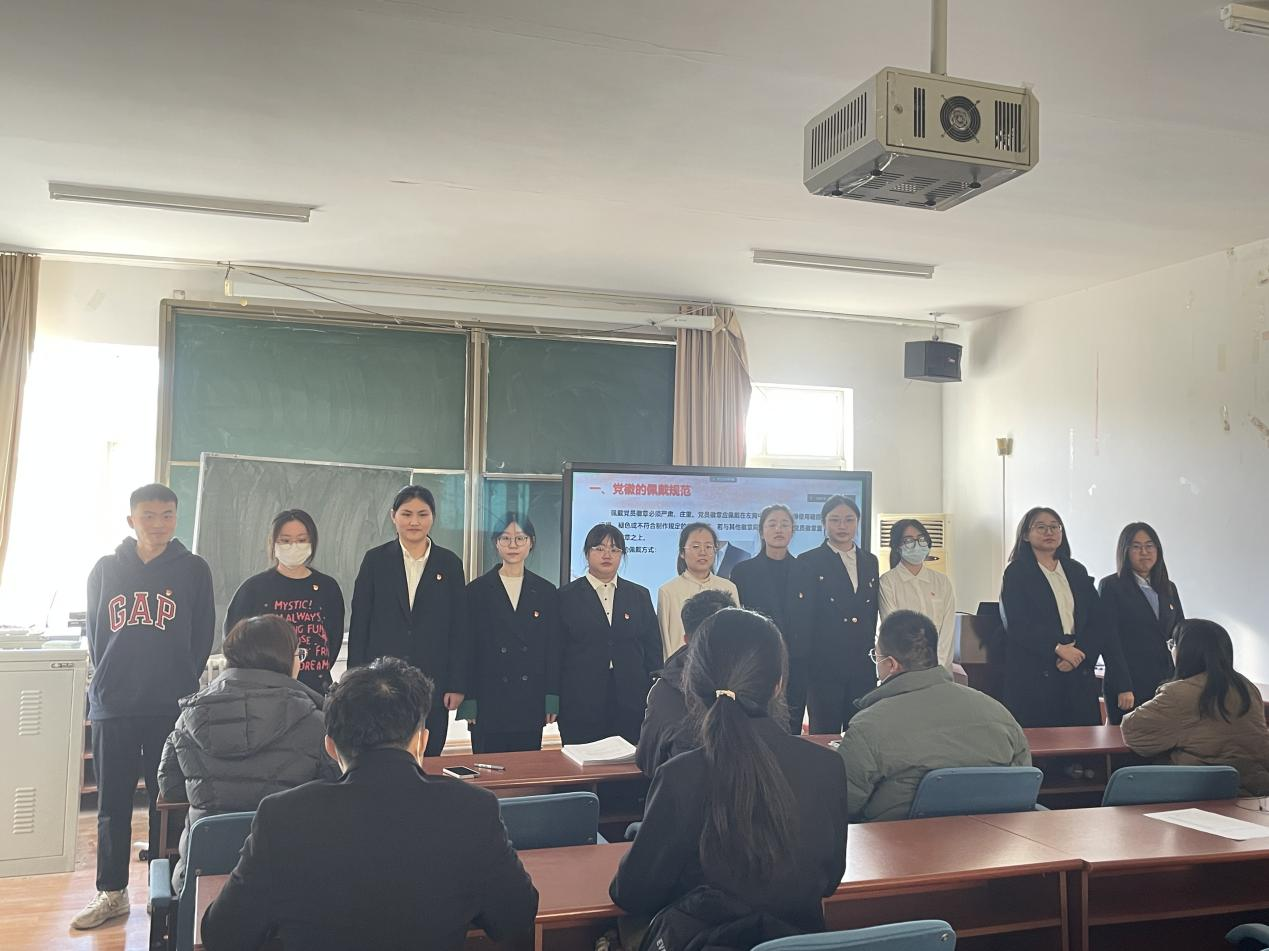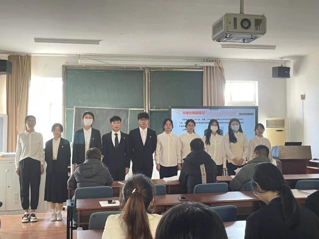 为深入贯彻落实《中国共产党党徽党旗条例》文件精神,充分发挥党徽党旗的政治功能,2023年11月28日,Beat365官网本科生党支部在励行楼302组织开展“党徽润初心,党旗照使命”主题党日活动。本次活动由本科生党支部宣传委员陈亚金主讲,支部全体党员参加。