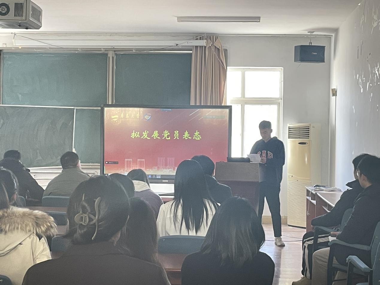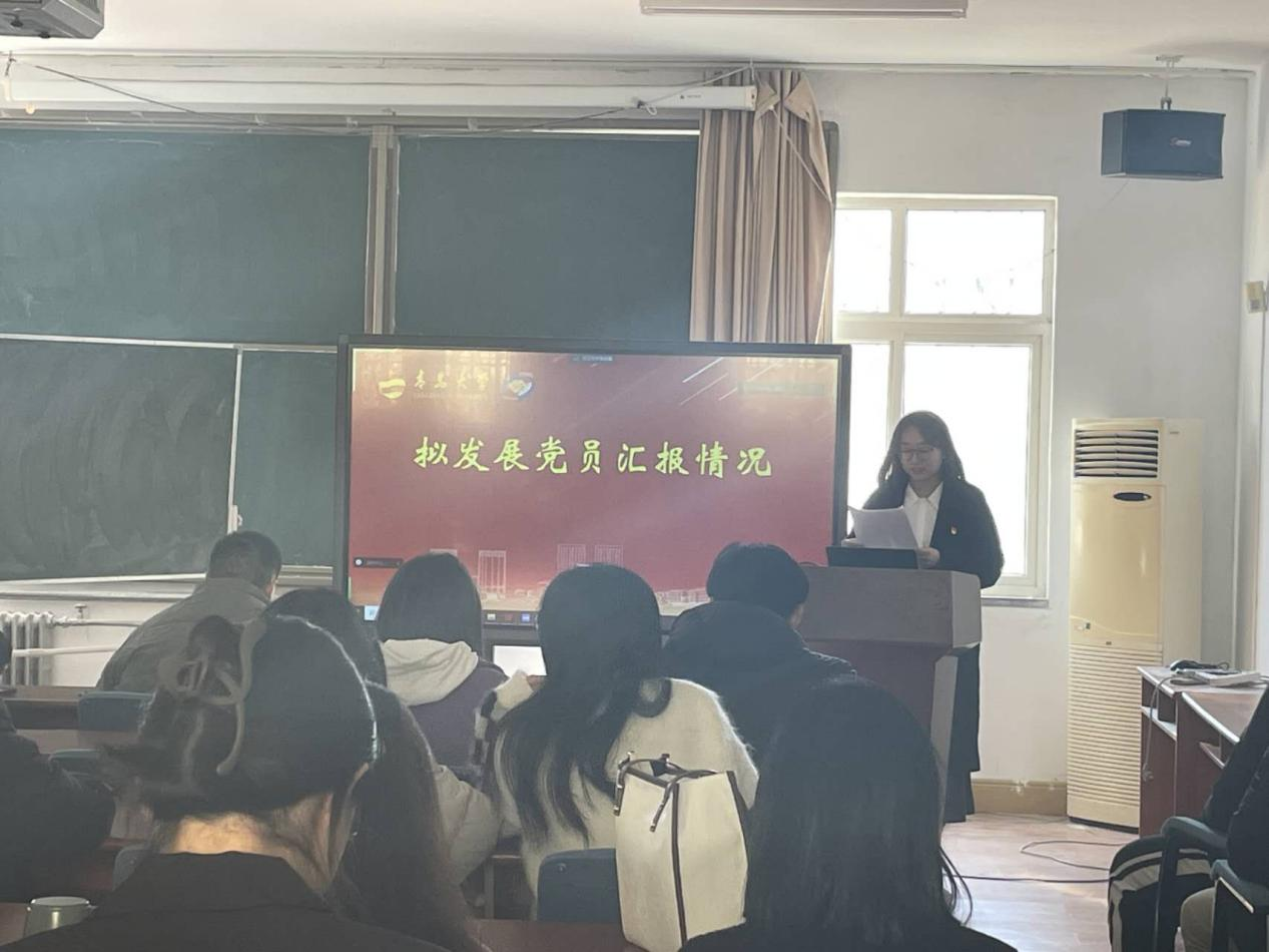 会议由本科生党支部书记朱雨彤同志主持支部全体党员和拟发展预备党员参加大会根据《中国共产党章程》和《中国共产党发展党员工作细则》要求,讨论吸收殷博文等22党员发展对象成为中国共产党预备党员的事宜