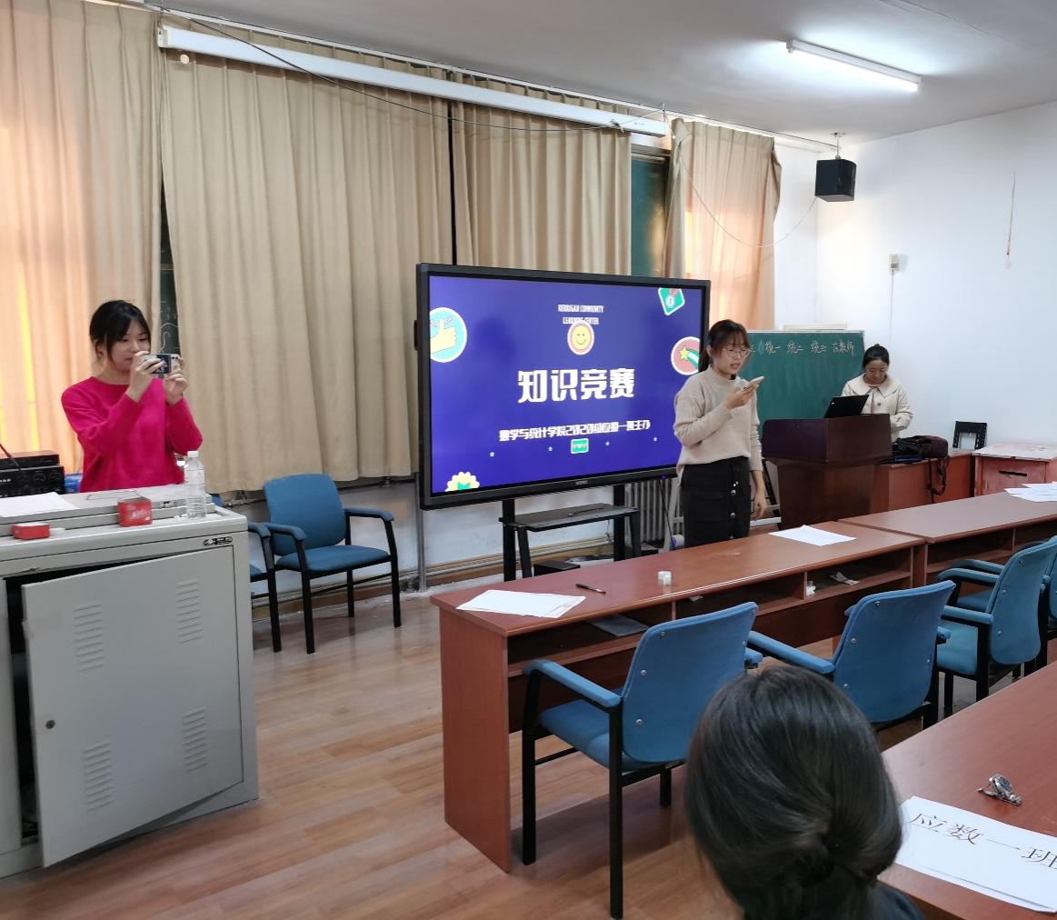 活动分为三个环节,分别为常规题,思考题和听音识曲题。本次活动以举手抢答的形式进行,主持人何雨宣读完比赛规则后,知识竞赛正式开始。同学们摩拳擦掌,志在必得。在屏幕上呈现一道常规题的同时,许多同学举手抢答,正确答案脱口而出。同学们积极抢答、踊跃发言的表现无不体现出数统学子的丰富知识储备。现场气氛活跃,你争我抢,不相上下。