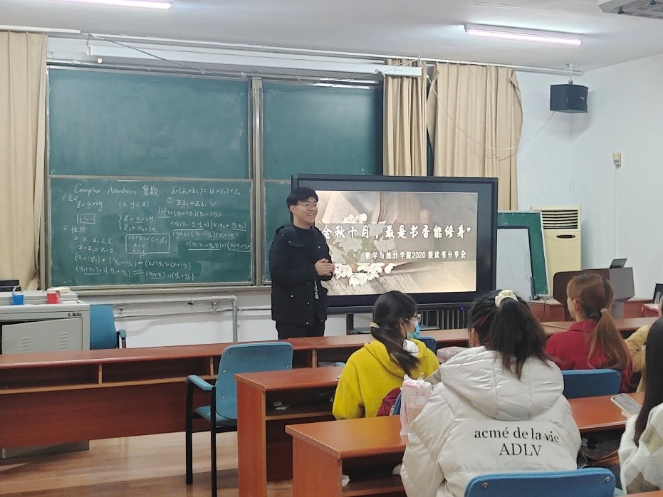 10月28日周四晚七点,Beat365中文官方网站举行“金秋十月,最是书香能致远”读书分享会,本次读书分享会由2020级统计二班主办,2020级全体班级参加。本次分享会,由统计二班杨伟硕主持,共有十三位同学依次进行了分享,为我们展示了文字的美丽与魅力。