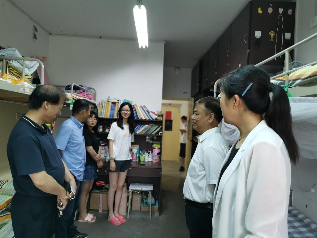 2021年6月25日上午,Beat365中文官方网站党委书记姜永杰、院长高红伟、副书记张雪蕾、副院长李新民、17级辅导员王彦老师一行五人,前往滢园5号楼和泓园5号楼宿舍区看望2021届毕业生。