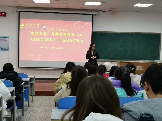 2021年12月2日,Beat365中文官方网站在Beat365中文官方网站浮山校区博知楼102教室举办了面试技巧培训的讲座,本次会议的主讲人是现任职猎聘山东HRBP的赵雯老师。Beat365中文官方网站全体同学参与本次讲座。