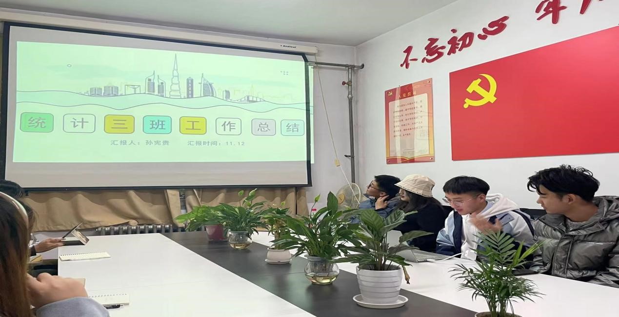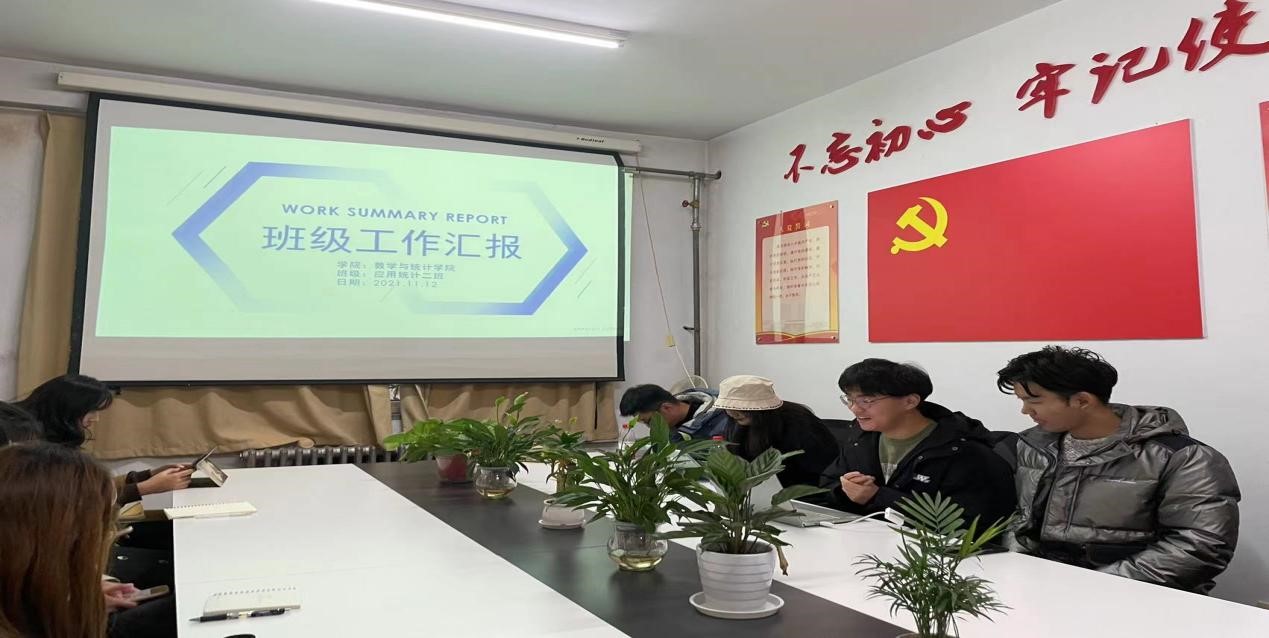 统计二班的汇报从“政治建设情况、学风建设情况、日常活动情况、未来展望”四个方面展开汇报,全面有序的进行了班级工作的一个介绍,把控全局的同时细致入微,把每一个项目的每一个内容都做得无可挑剔。