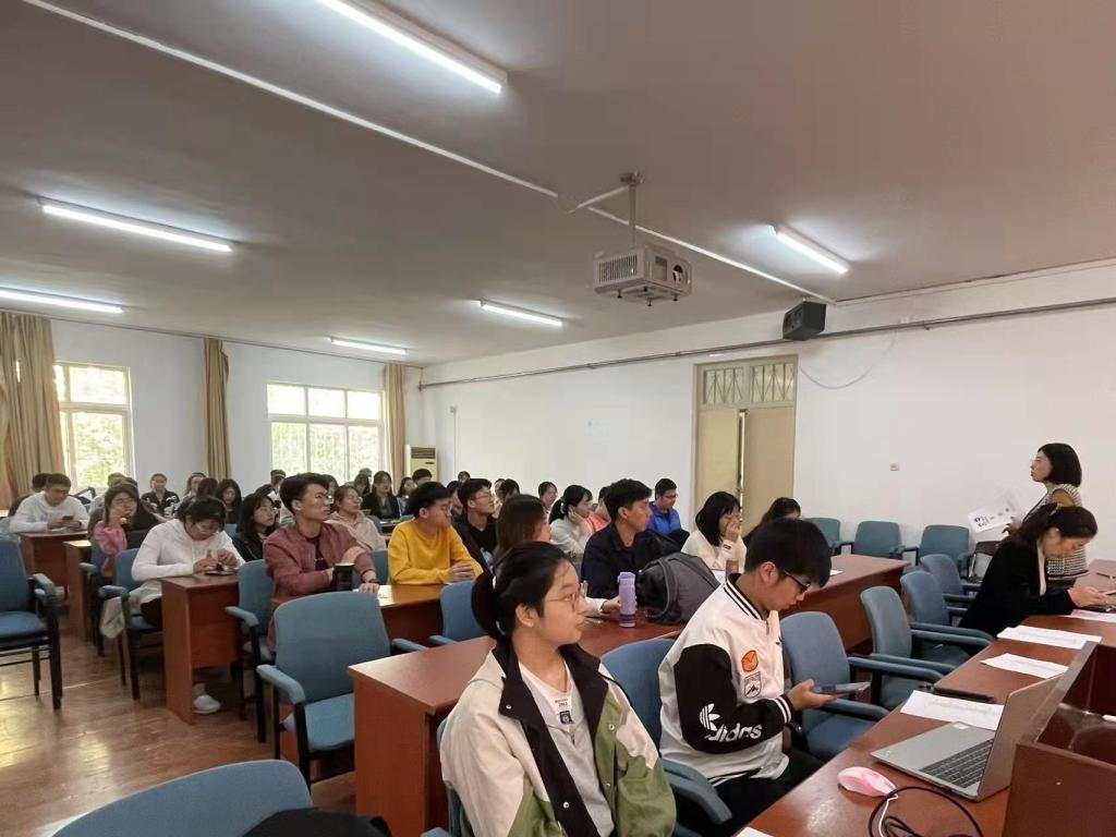 比赛开始前,张雪蕾带领大家观摩学习了两位往届优秀学生的说课演讲视频,期望大家学习领悟他们的演讲风采。