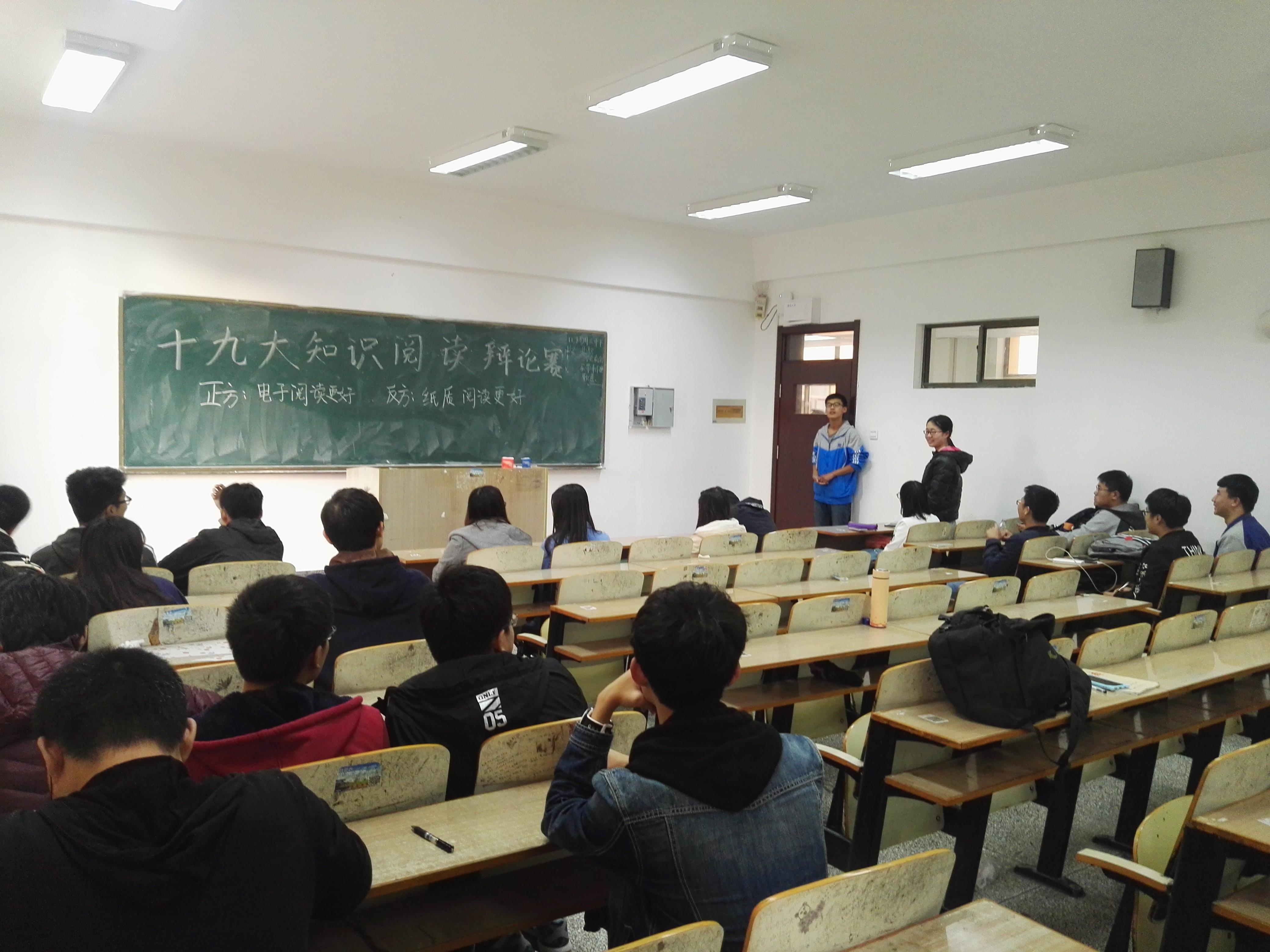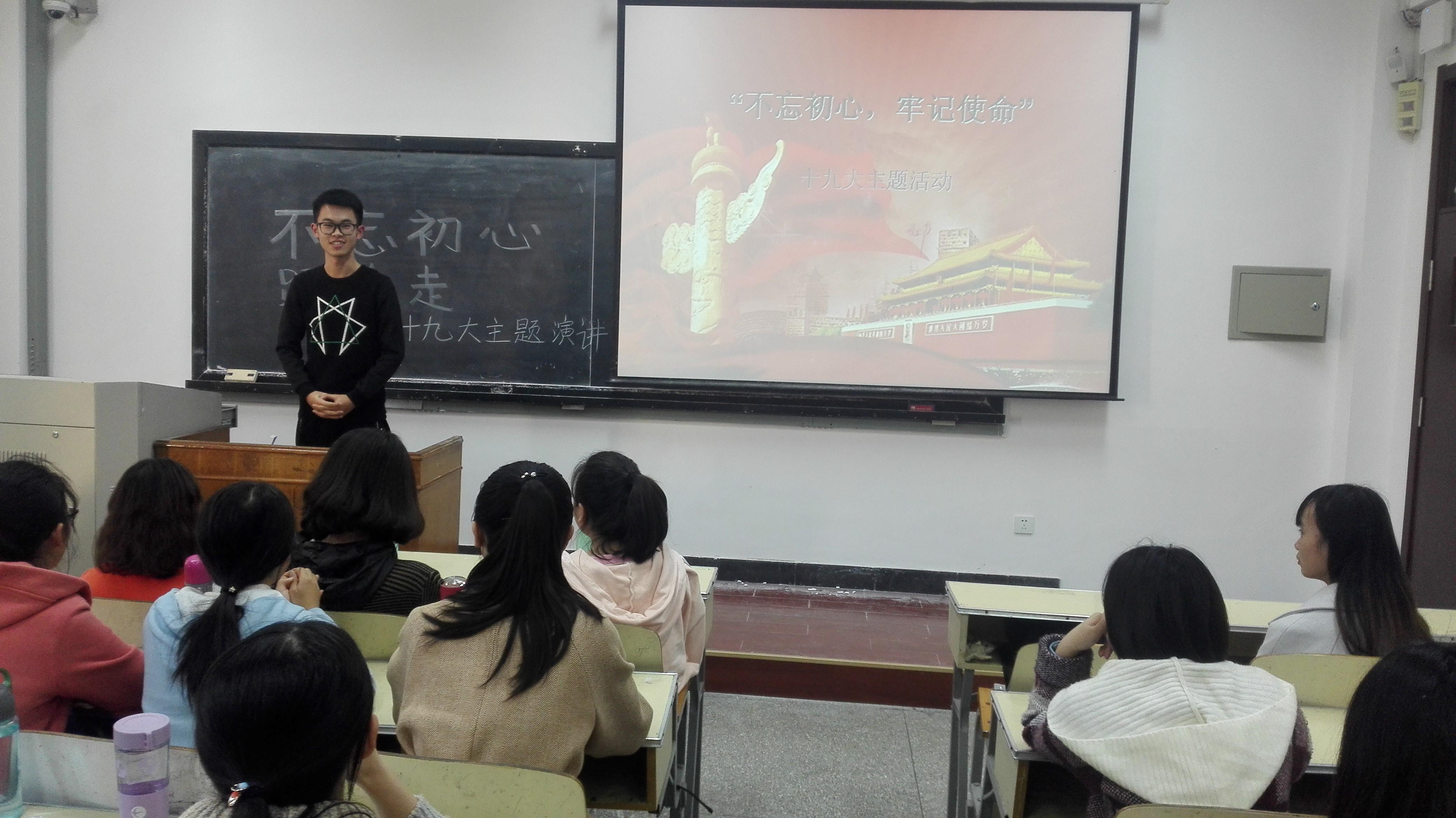 各支部团日活动的内容丰富,形式多样。其中15级信息与计算科学二班团支部独具匠心,采用辩论的形式,以“电子阅读VS纸质阅读”为主题来聚焦十九大。紧扣十九大重点推行的政策方针,辩论双方进行了一场有理有据的唇枪舌战,从物质和精神两个层面深刻剖析了我国生态现状与精神文明建设,也为自己融入十九大营造了良好的氛围。15级统计一班团支部则是开展了以“不忘初心,跟党走”的主题演讲比赛,让同学们感受十九大的风采,同时认识到新世纪,新的阶段。面对复杂的国际国内形势,我党面临着更大的考验和挑战。只有团结一致,听从党的指挥,我们才能从容应对。而我们,作为当代大学生,更应该承担起肩上的使命,为祖国的崛起而奋斗。15级应数师范班团支部的活动由浅入深,在观看了习近平主席所做十九大报告的经典视频节选,以及从“五位一体”、“四个全面”解读十九大的专家访谈视频后,同学们通过自由讨论,更加深刻理解了这份报告的内涵和价值。15级应数创新班团支部则组织观看了红色主题电影,通过影片见证党的成长,认识到党对人民的深远意义。在回顾过去的同时,珍惜现在,展望未来。15级统计二班团支部还开展了“喜迎十九大,共筑中国梦”的签名活动,一张红色的卡纸上不仅仅承载着同学们的誓言,更见证着他们的成长以及同学们对建设富强民主文明和谐美丽的社会主义现代化国家的梦想与憧憬。此外,15级信息与计算科学一班团支部以及15级应数一班团支部也分别开展了有关十九大的主题班会与班级研讨会,让同学们近距离接触十九大,同时也让同学们深刻地体会到,作为青年,一定要按照习近平总书记提出的“四要”的要求,唯如此,才能永远保持锐意进取、不断创新的精神。把责任扛在肩上,勇于担当,开拓进取,在实现中华民族伟大复兴的伟大征程中不枉青春走一遭。