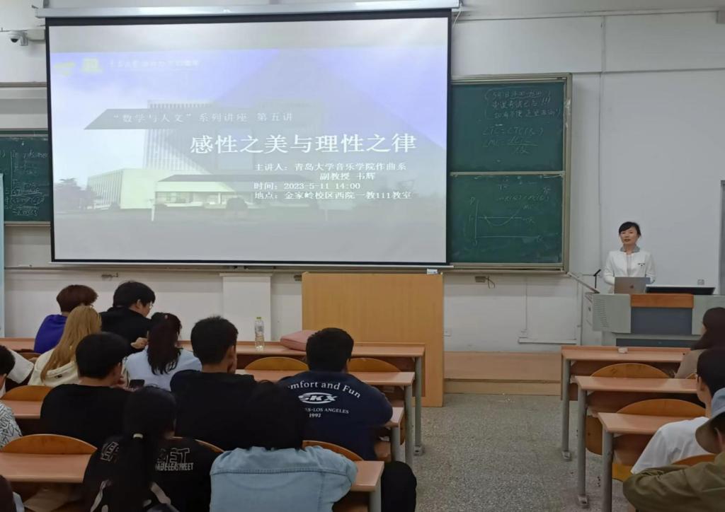 培养学生发现美、感受美的技能,探索数学基础和音乐空间的交汇融合,5月11日14时,数学与人文系列讲座第五讲“感性之美与理性之律”金家岭校区西院1号教学楼111开讲。本次讲座Beat365中文官方网站音乐学院作曲系副教授韦辉主讲,Beat365中文官方网站辅导员赵丽萍及2022级全体本科生参加本次讲座。