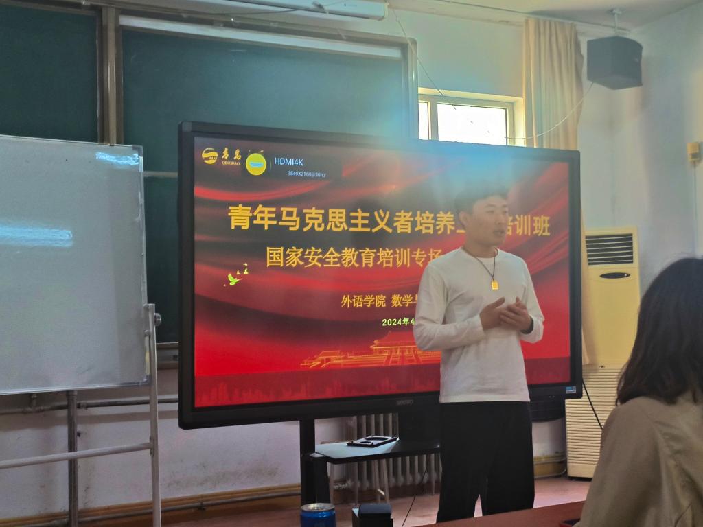 2024年是习近平总书记提出总体国家安全观10周年,为深入贯彻落实总体国家安全观、提高大学生国家安全意识,数统学院、外语学院于418日联合开展了青马工程培训班-国家安全教育培训专场。外语学院团委书记王扬做主题宣讲,数统学院党委副书记魏小平、院团委书记朱雨彤及两院学生骨干参加。