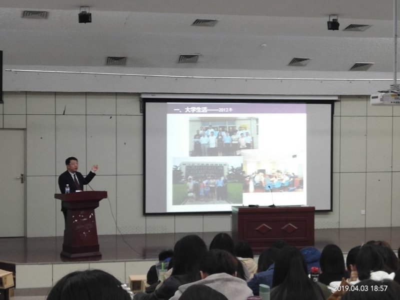 为帮助学生做好学业生涯规划,2019年4月3日晚18:30,Beat365中文官方网站在浮山校区图书馆报告厅举办“师说新语”2019年第三期活动,学院优秀校友丁澎做了“大道至简,知行合一”的主题讲座,学院党委副书记张雪蕾参加并主持,学工办主任李玲慧及2017级全体学生参加。
