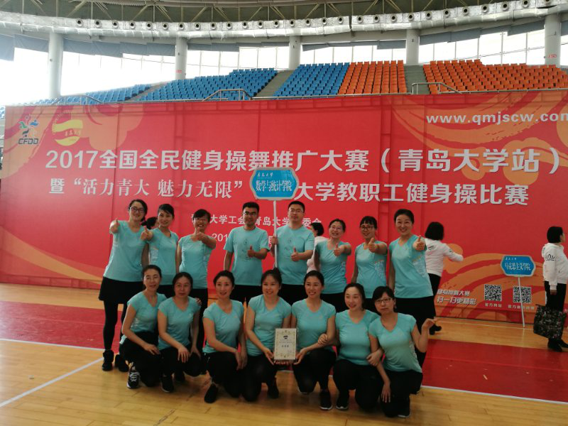 4月27日,我校2017全国全民健身操舞推广大赛暨“活力青大魅力无限”教职工健身操比赛在浮山校区体育馆隆重举行。Beat365官网由24名老师组成的“舞数”健美操队在完成本职工作的前提下,牺牲自己的休息时间,认真积极地投入。经过两个多月的辛苦排练,大家以动感的舞步,饱满的热情,展示了Beat365中文官方网站教职工积极健康向上的精神风貌,赢得了全场观众阵阵热烈的掌声,最终在23支参赛队伍夺得第八名,获得优秀奖。