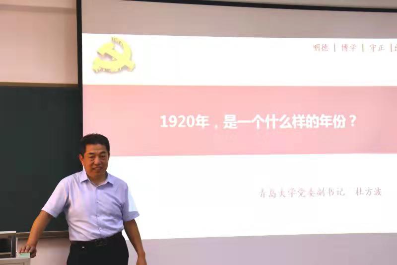 915日下午,校党委副书记杜方波在浮山校区博远楼206教室以“1920年,是一个什么样的年份”为题,为2019级数学与应用数学(师范类)本科生讲授了一堂别开生面的思政课。