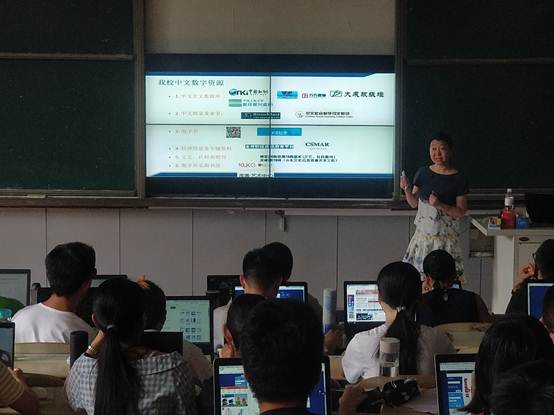 胡维青主任首先从中文数据库探秘切入,系统地介绍了我校图书馆订购的中文数据库情况,讲解并演示了针对不同数据库的检索方式和检索要点,使大家对中国知网、维普资讯、万方数据等数字资源数据库的使用有了更加深刻的认识。随后,胡主任对外文数据库也进行了详细介绍,并结合参赛队员中不同专业的学生,给出了不同的使用建议。