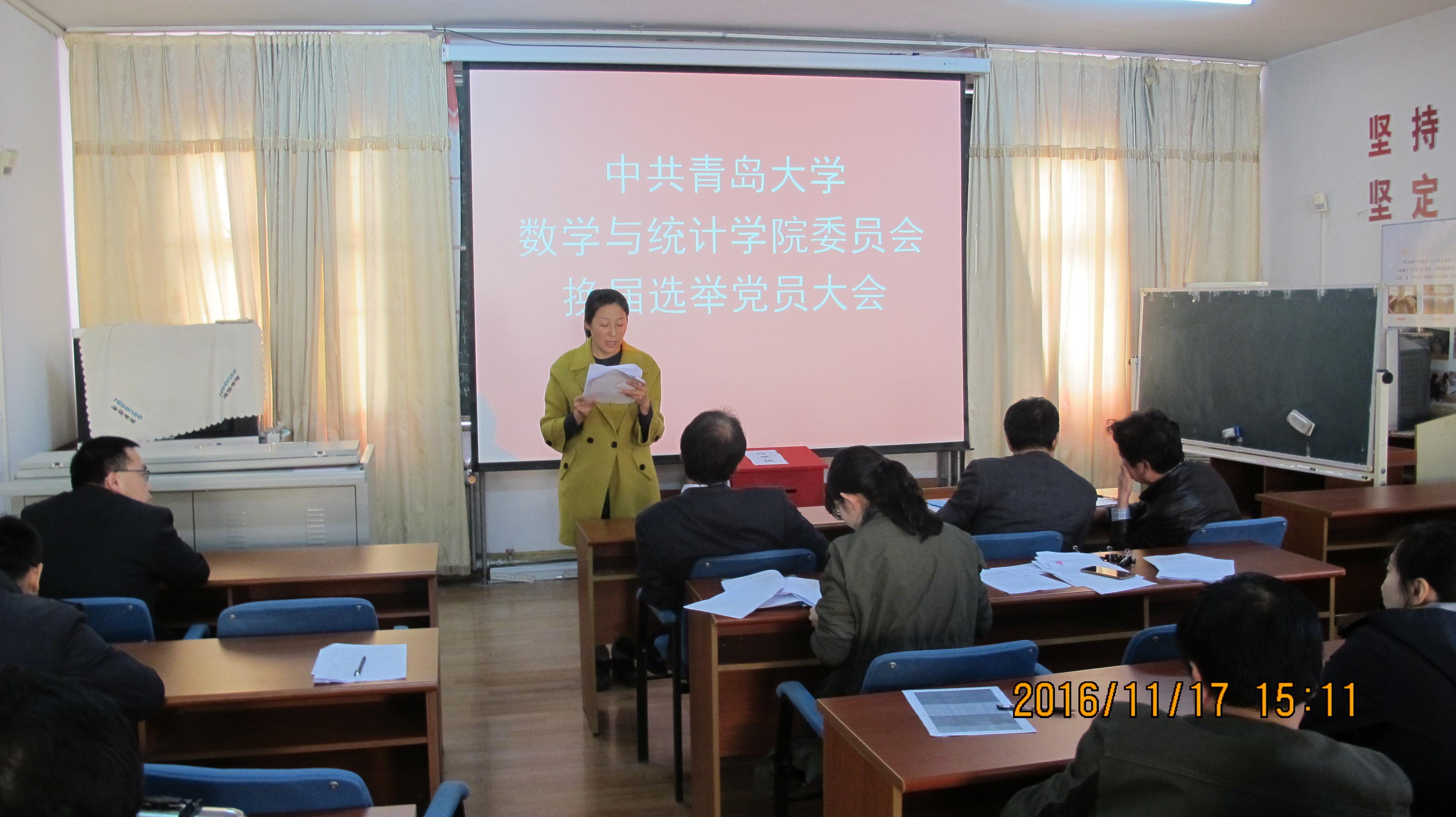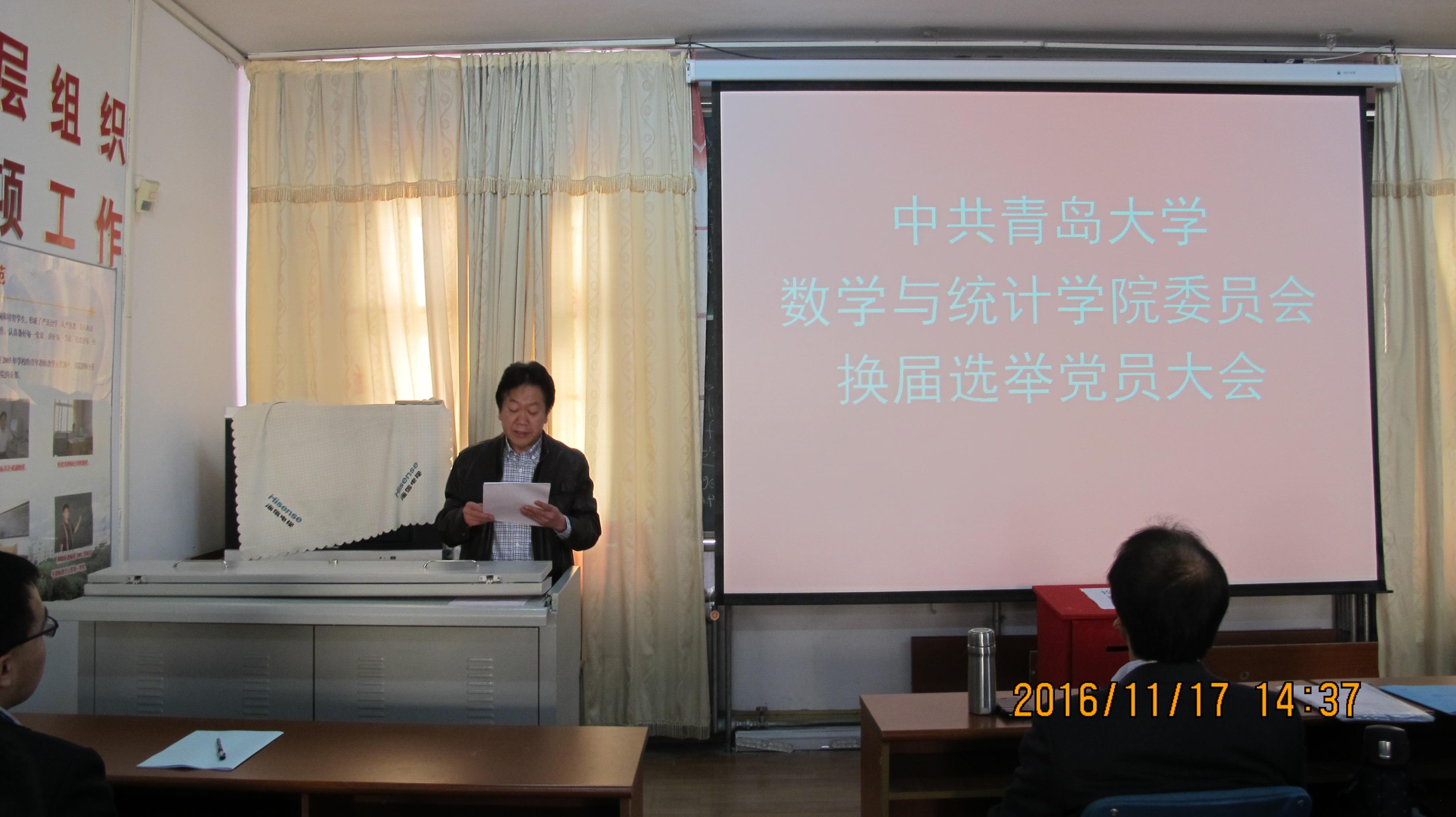 11月17日下午,中共Beat365中文官方网站委员会党员大会在励行楼三楼会议室召开。校组织部副书记孙典中、纪委杜鹏出席了大会,Beat365官网师生党员和学生党员70余人参加了大会。大会由学院副书记张雪蕾同志主持。