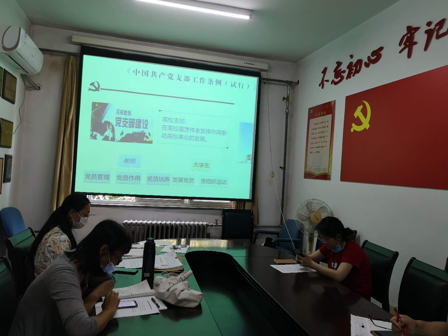 会前,各支部书记分别自学了《党支部如何开展民主评议党员》和《中国共产党支部工作条例(试行)》两个文件;会上,姜永杰首先领学了《中国共产党支部工作条例(试行)》部分章节内容;随后,全体支部书记集体收看了视频辅导报告——中央党校教研部陈凯龙主讲的《中国共产党支部工作条例(试行)》》。