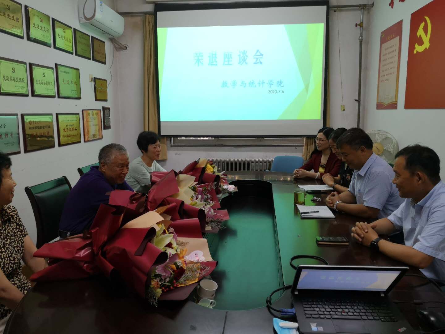 76日下午两点,学院为赵凯、蓝荣、庄翠霞位从教30多年的教师举行荣退座谈会。学院党委副书记张雪蕾主持座谈会。副院长李新民、丁洁玉、教科办主任车红、党政办主任邢欣参加座谈会。学院党委书记姜永杰代表学院讲话。