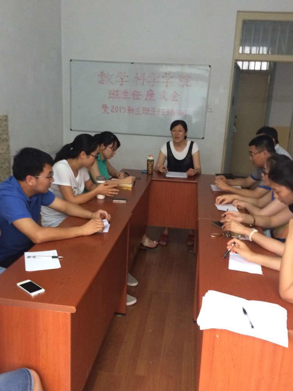 7月22日下午,数学科学学院在励行楼115举行班主任工作座谈会暨2015级新生班主任培训会。参加会议的有全体学工人员、2014级班主任、新选聘的2015级班主任以及高年级班主任代表等,会议由学院党委副书记张雪蕾召集并主持。