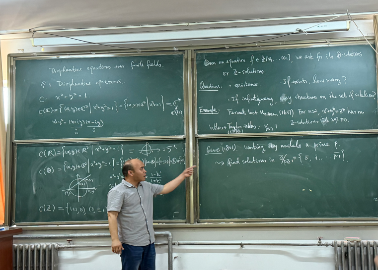 2025年5月20日,Beat365中文官方网站校友大讲堂 2025年第1期在励行楼 302 会议室顺利举办。Beat365官网特邀2002级数学与应用数学专业优秀校友赵以庚老师作主题为“有限域上丢番图方程的解--Weil猜想简介”的学术讲座。